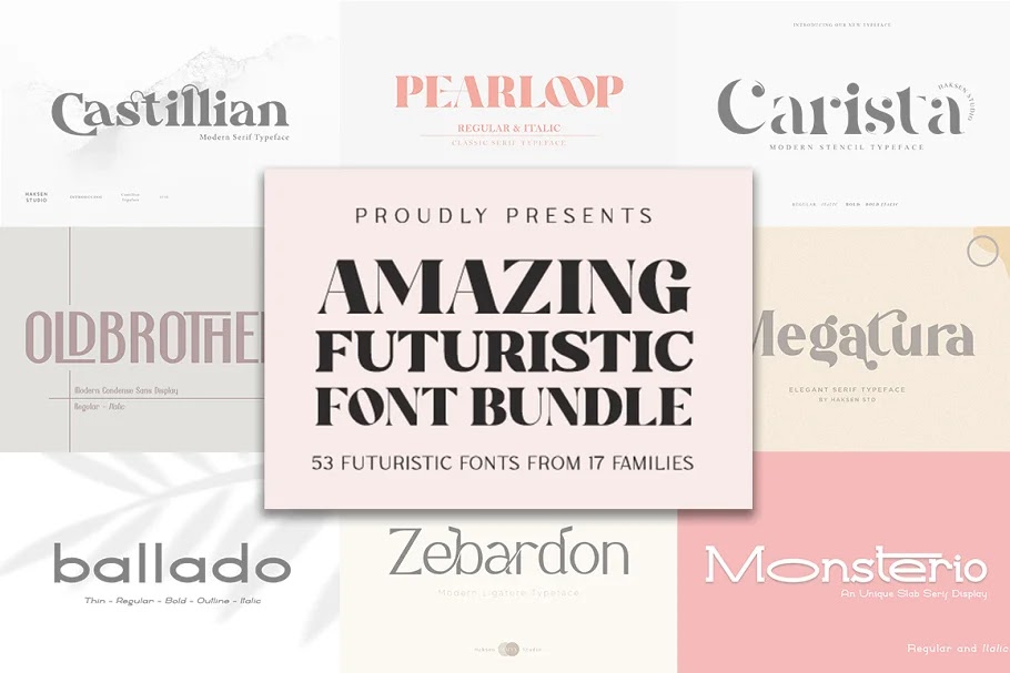 Amazing Futuristic Font Bundle 5914493 đây là bộ font chữ độc đáo với các phông chữ Serif, Sans Serif, Slab Serif và Display, tất cả đều mang phong cách hiện đại. Bao gồm 53 phông chữ tốt nhất.