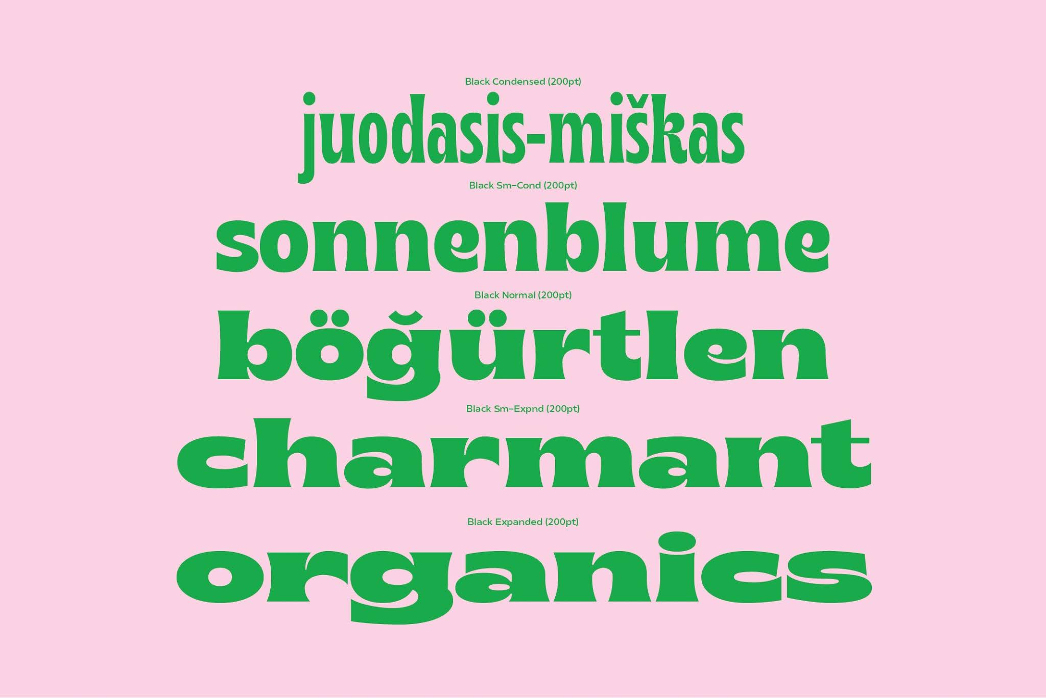 Brice có sẵn trong 5 width (Condensed – SemiCondensed – Normal – SemiExpanded – Expanded) với các trận đấu 6 weight (ExtraLight – Light – Normal – SemiBold – Bold – Black) và hỗ trợ hơn 75 ngôn ngữ.