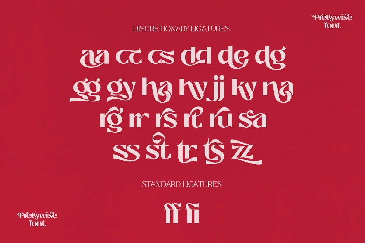 Prettywise – Modern Retro FamilyMột bộ font độc đáo và đẹp mắt bao gồm hơn 30 chữ ghép và hơn 100 chữ thay thế để cho bạn thoải mái kết hợp mang đến những thiết kế hoàn hảo.