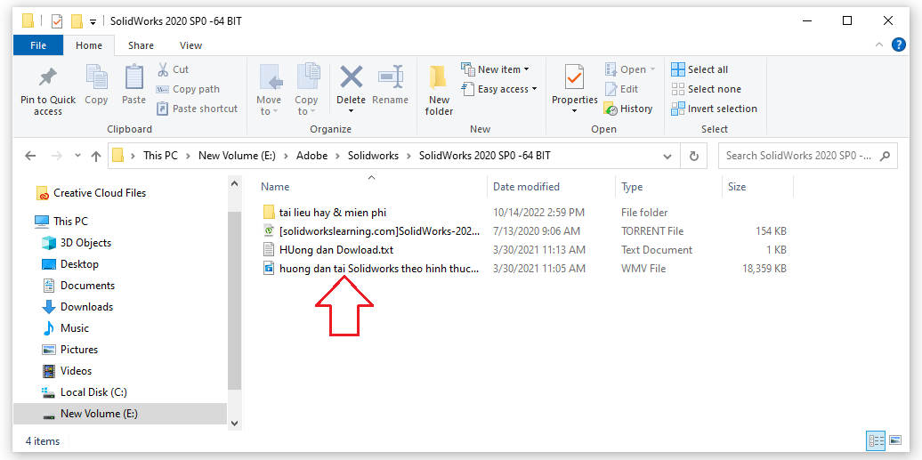 • Chú ý: Khi giải nén file ra các bạn xem video hướng dẫn tải SolidWorks bằng Utorrent. Khi tải bằng Utorrent tốc độ nhanh và không bị lỗi file cài đặt