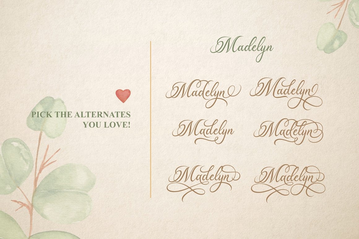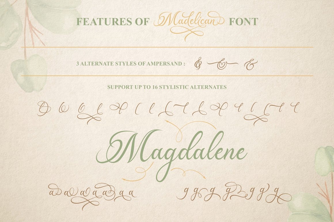 Font Madelican Calligraphy Việt Hóa là sự kết hợp tuyệt đẹp giữa thư pháp hiện đại và cổ điển. Lấy cảm hứng từ chữ viết tay của phụ nữ Ý và những bản thảo cổ.