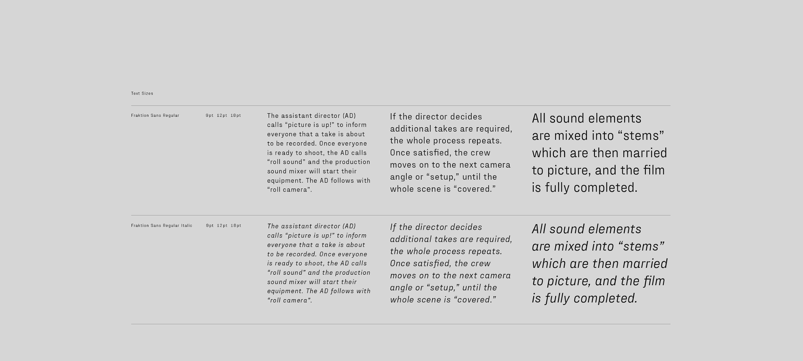 Fraktion Sans là một bộ font cực ấn tượng với thiết kế đương đại khám phá không gian giữa độ bền cơ học và sự rõ ràng của biểu cảm. Trong khi nguồn cảm hứng của nó bắt nguồn từ ký tự bảng hiệu cổ điển, thiết kế cuối cùng là một sự khởi đầu khá xa.