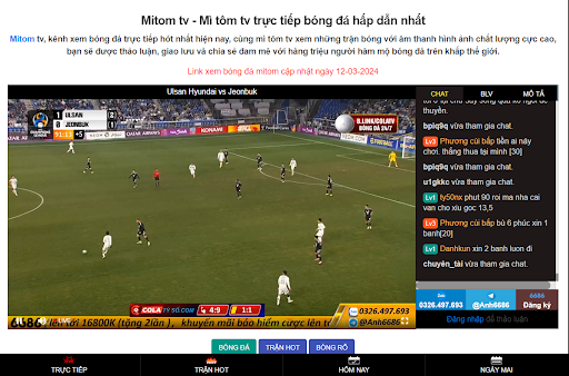 Mitom TV – Trải nghiệm xem trực tiếp bóng đá với chất lượng sắc nét Full HD