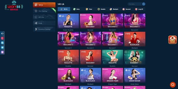 So sánh số lượng game ở live casino tại nhà cái Lucky88 và May88 Điều...