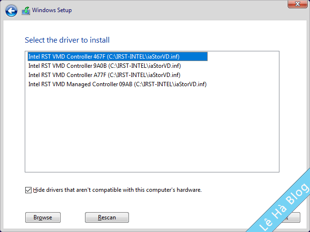 Sau đó chọn đến thư mục IRST-INTEL để thực thiện thêm driver IRST thì máy tính.