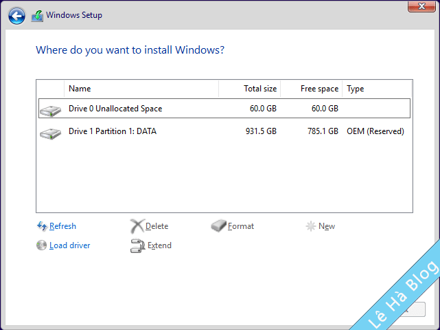 Bước 6: Bạn hãy chọn chính xác phân vùng Unallocated đã chuẩn bị trước.